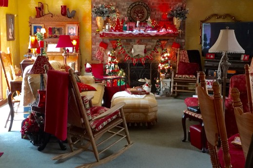 Over-the-top? That’s part of the charm! This is our den and the year-round color scheme is red and gold.