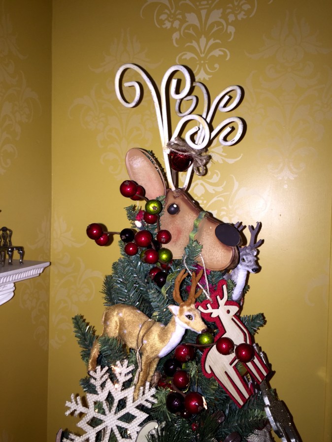 I found this painted metal reindeer head at Goodwill and it set the theme for Christmas 2015.