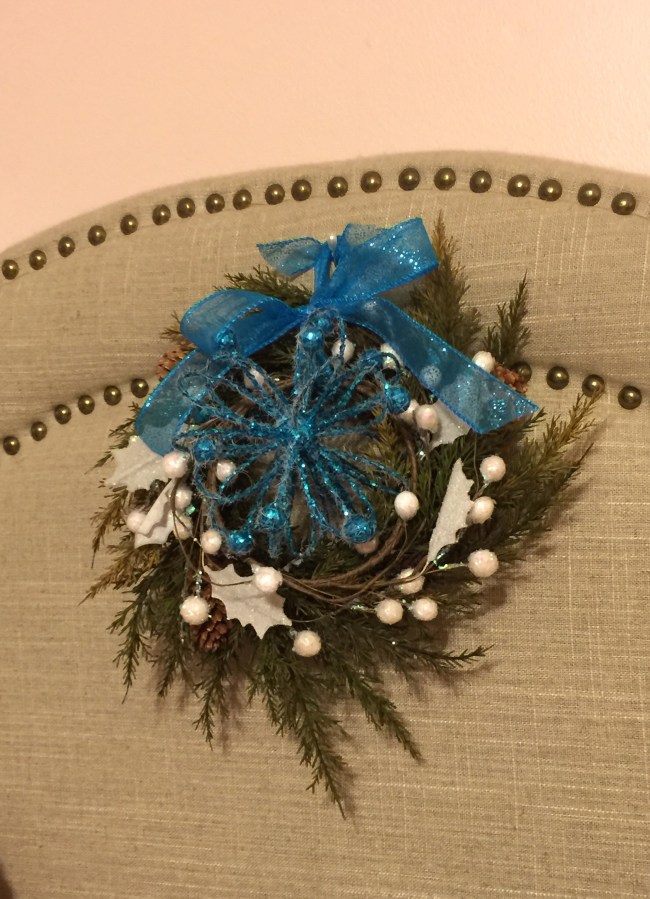 I combined three different small decorative items into one delicate, small “wreath”.